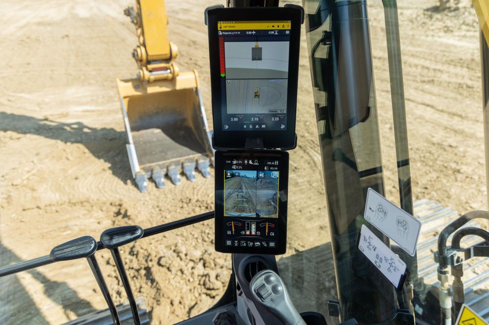 - Cat® Grade con 3D para excavadoras ayuda a los operadores a nivelar de forma más rápida, precisa y eficiente, mejorando la productividad.* Incorpora tecnología GNSS y guía de posicionamiento RTK para agilizar el proceso de nivelación de diseños complejos que suelen encontrarse en grandes proyectos comerciales y de infraestructuras. Este sistema permite a los operadores trabajar con confianza, eliminando conjeturas mientras cortan y rellenan según especificaciones precisas.